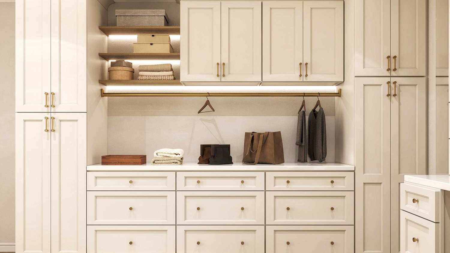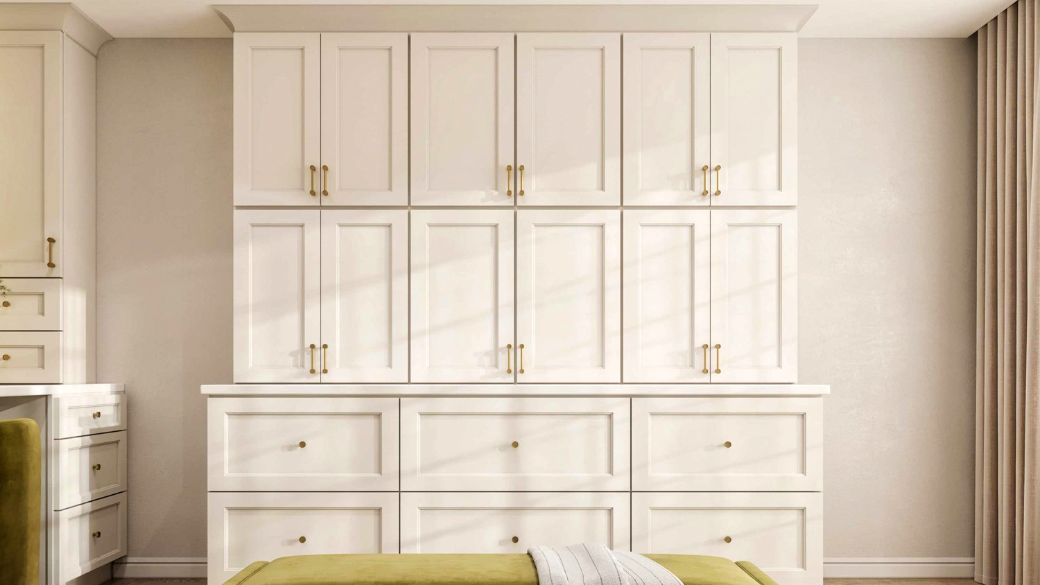 The Ornate White cabinets bring an air of sophisticated luxury and architectural grandeur to South Florida homes. Featuring timeless shaker lines, durable craftsmanship, and a crisp, multi-tonal white finish, they offer a perfect balance of high-end drama and classic livability. Ideal for expansive kitchens, formal walk-in closets, and executive suites, these cabinets create a prestigious foundation that complements traditional, transitional, and opulent contemporary interiors with ease.